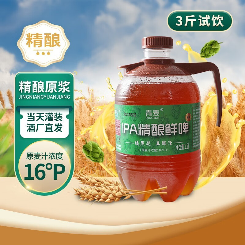 青麥精釀原漿啤酒,酒廠直營(yíng),全麥釀造,醇厚濃郁。